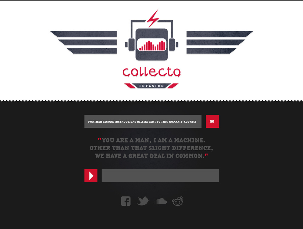 Last year we (NoTwelve) had the pleasure of working with one of the most easy going and highly driven new producer/DJ in the Central Valley. The issue was simple: he needed an identity. A couple years ago I actually did a quick illustration for his first act, a New Year show. As you can see his brand came out hard and strong, which is always a huge plus when working on the actual identity. At the time the logo itself identified with his live act, a robot from outer space set to unleash groovy beats on his human captives. Recently Captain Collecto dropped the costume but the brand sticks and is largely carried by the logo itself.