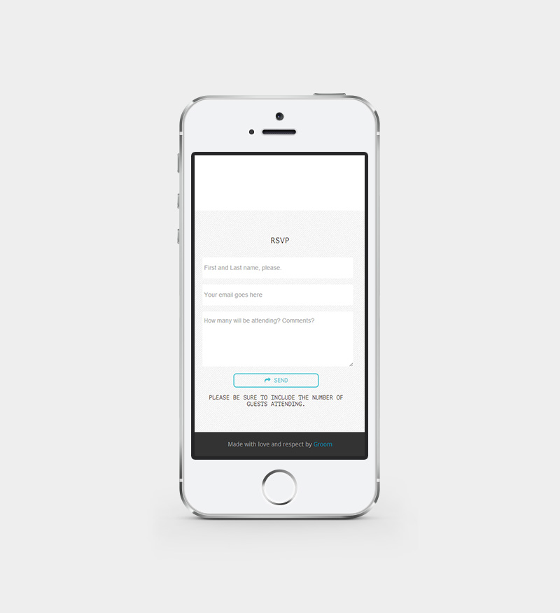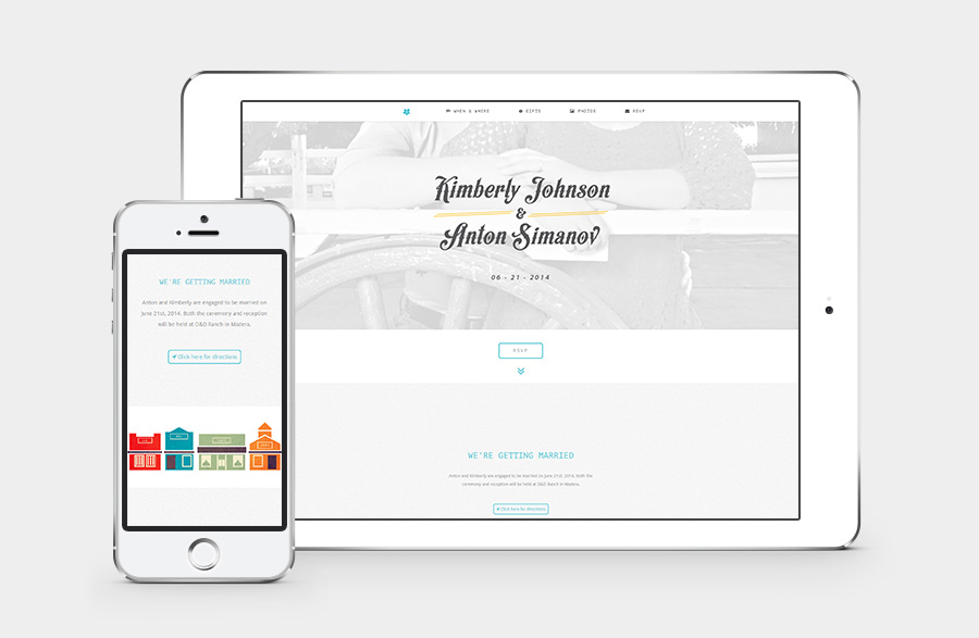 Without a doubt the first component that I thought about in regards to this project was the website. More or less this was a great excuse to quickly put together a mobile-first single pager. Just a reminder for anyone out there with a wedding coming up: it’s really not that hard to build a simple single page site. If you’re new to building websites and would like to get started learning how to build single page sites I suggest taking a look at Fabric by NoTwelve - bare bone framework with everything you need already built-in. Speaking of Fabric, new version coming out soon-ish. Even if you don't build it yourself there are plenty of tools out there available for free/cheap to make a quick and easy WYSIWYG site.